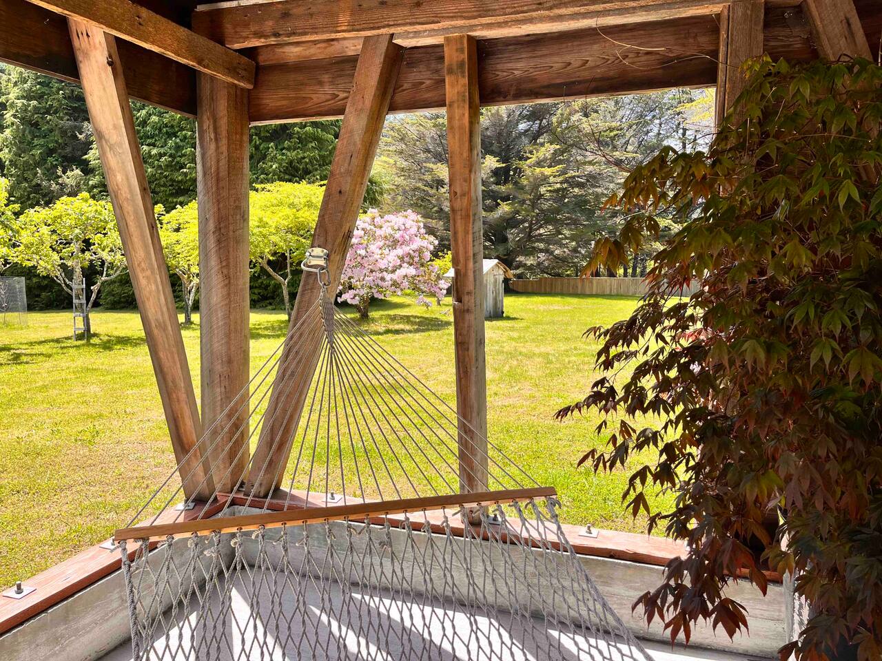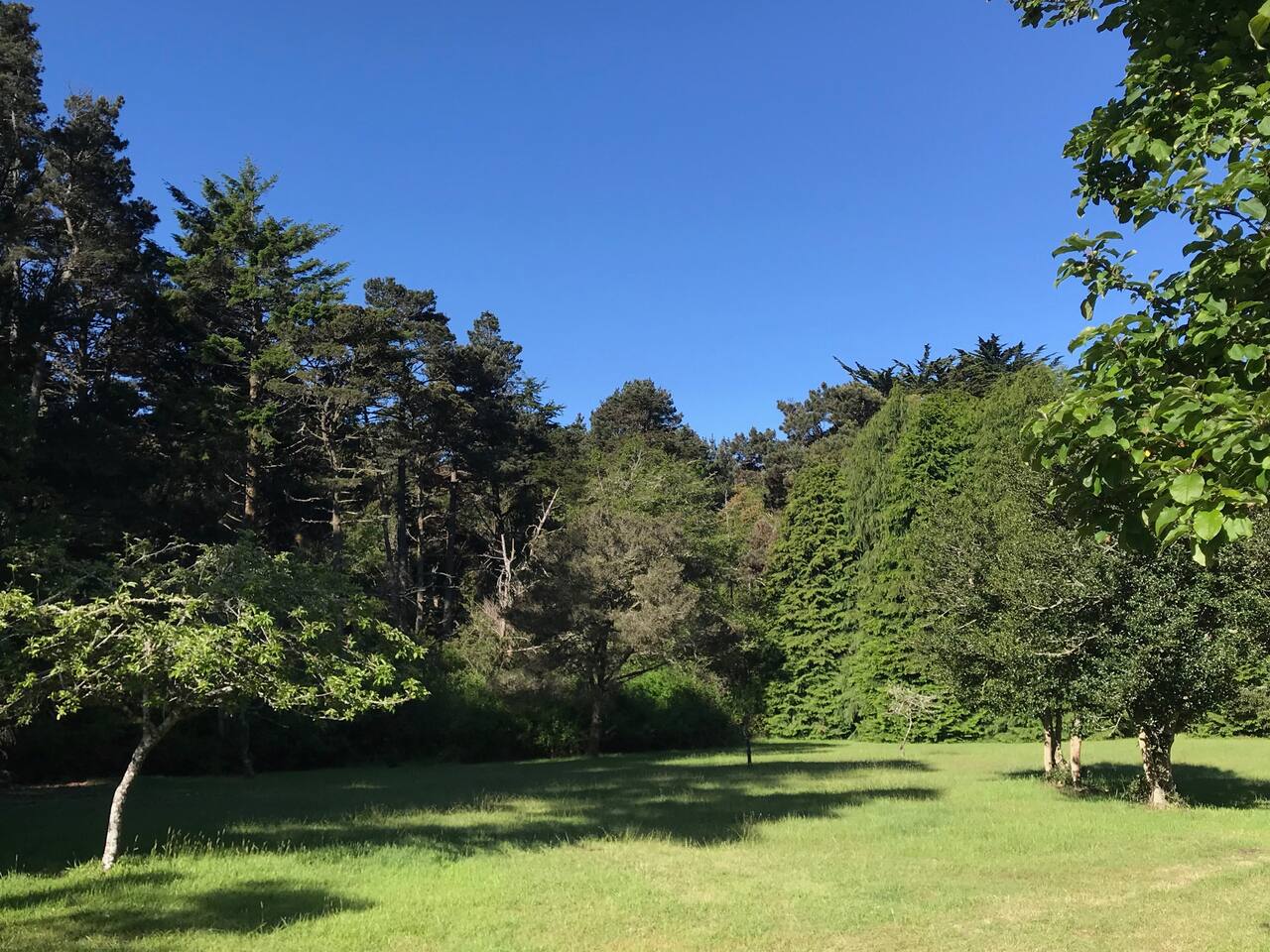 This picturesque rural neighborhood lies conveniently between Fort Bragg and Mendocino, just a 5 or 10 minute drive into town respectively. The house sits on 5 private acres, so peace and tranquility are guaranteed, yet access to all the Mendocino Coast has to offer is just a few minutes drive away. The nearest beach (our secret beach few tourists know about!) is just a two minute drive away. Amenities such as Harvest Market grocery store and the Botanical Gardens are just a 3-5 minute drive. The beautiful Mendocino Coast has so much to offer visitors; as local residents we can offer many tips on the area's attractions. (Although you may not want to leave the property!)